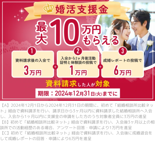 今だけ婚活支援金キャンペーン中なので、ぜひ見てみてくださいね🥰